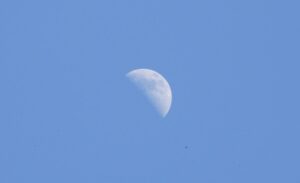 青空に浮かぶ美しい月を愛でましょう! 欠けている月は、横から光が当たっているため影が伸び、クレーターなどの地形が際立ち、青空でもとても見ごたえがあります。その美...