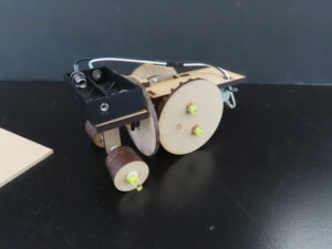 講師:当館職員・科学教育専門員 﨑川誠一による体験教室です。 床の上ではまっすぐ走りますが、板に乗せるとくるくる回って落ちない不思議な車を作ります。時々板から逃...