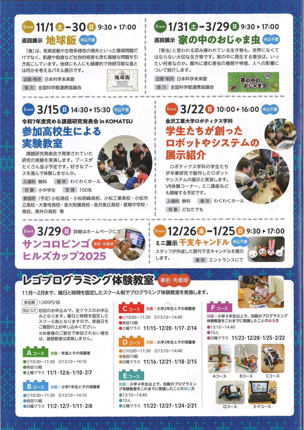 再度ご確認をお願いします。https://science-hills-komatsu.jp/wp/event/39545/2025-11-14/