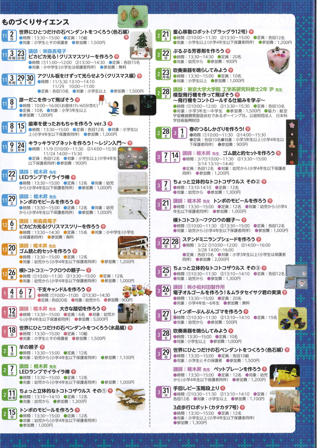 ※イベント情報チラシに掲載している、高校生サイエンスの実施日が変更となっておりますので、