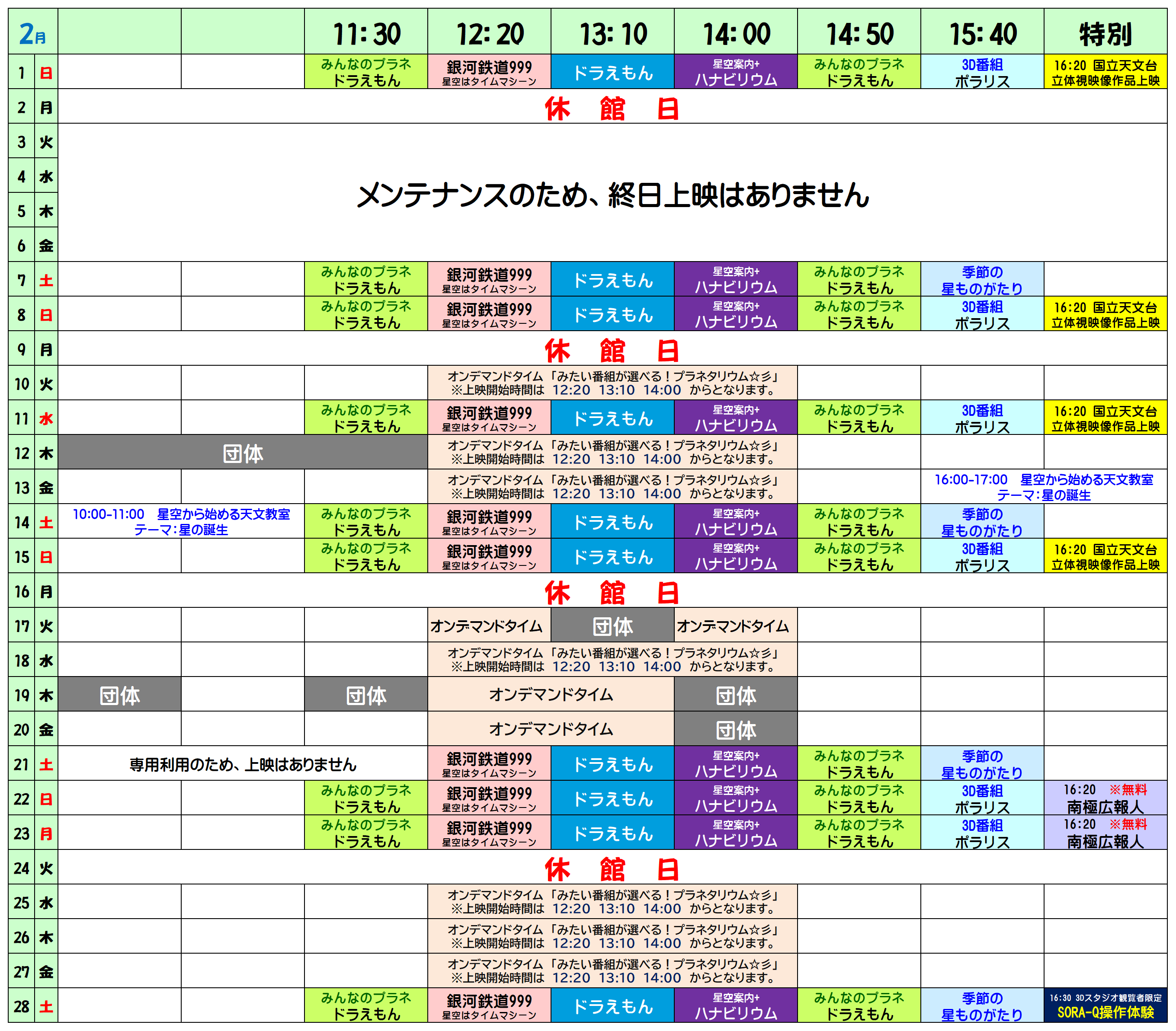 見たい番組が選べる!プラネタリウム