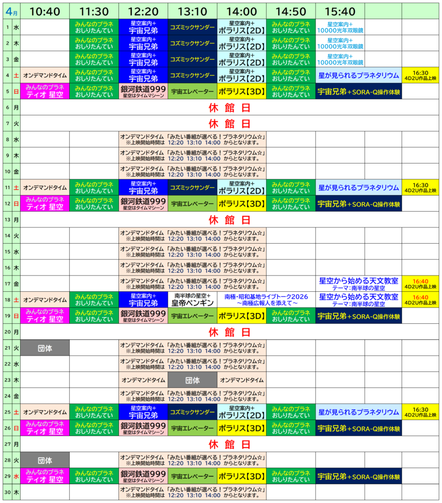見たい番組が選べる!プラネタリウム