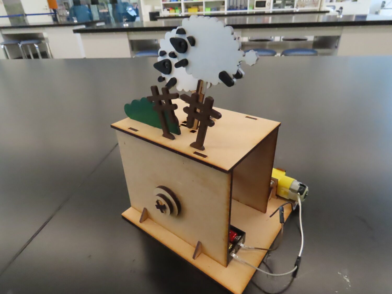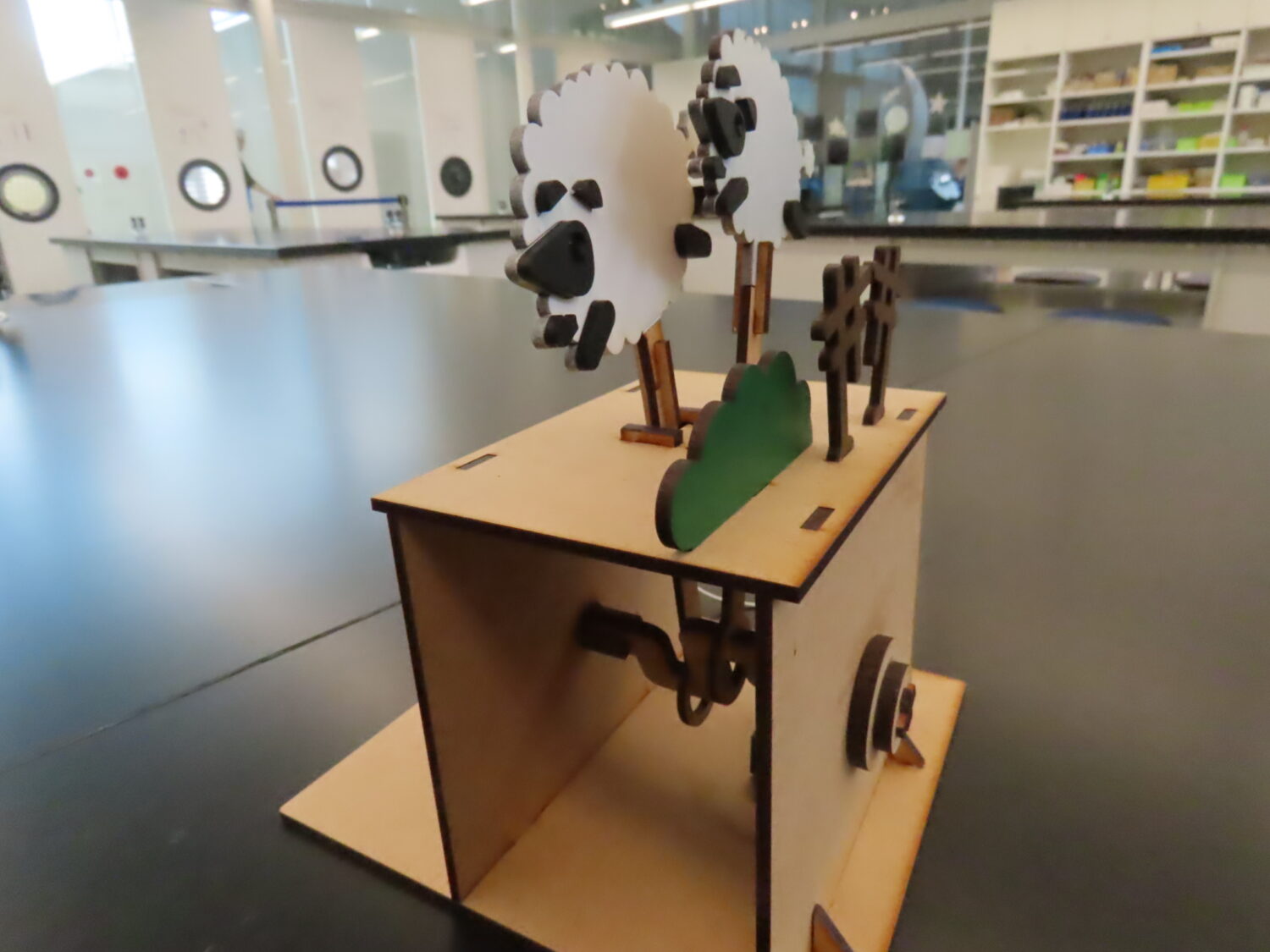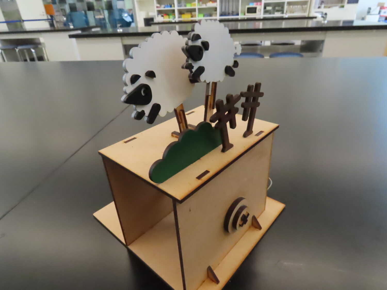 親子の羊が交互にジャンプして見える工作です。回転軸をクランクにしてジャンプする仕組みを作ります。