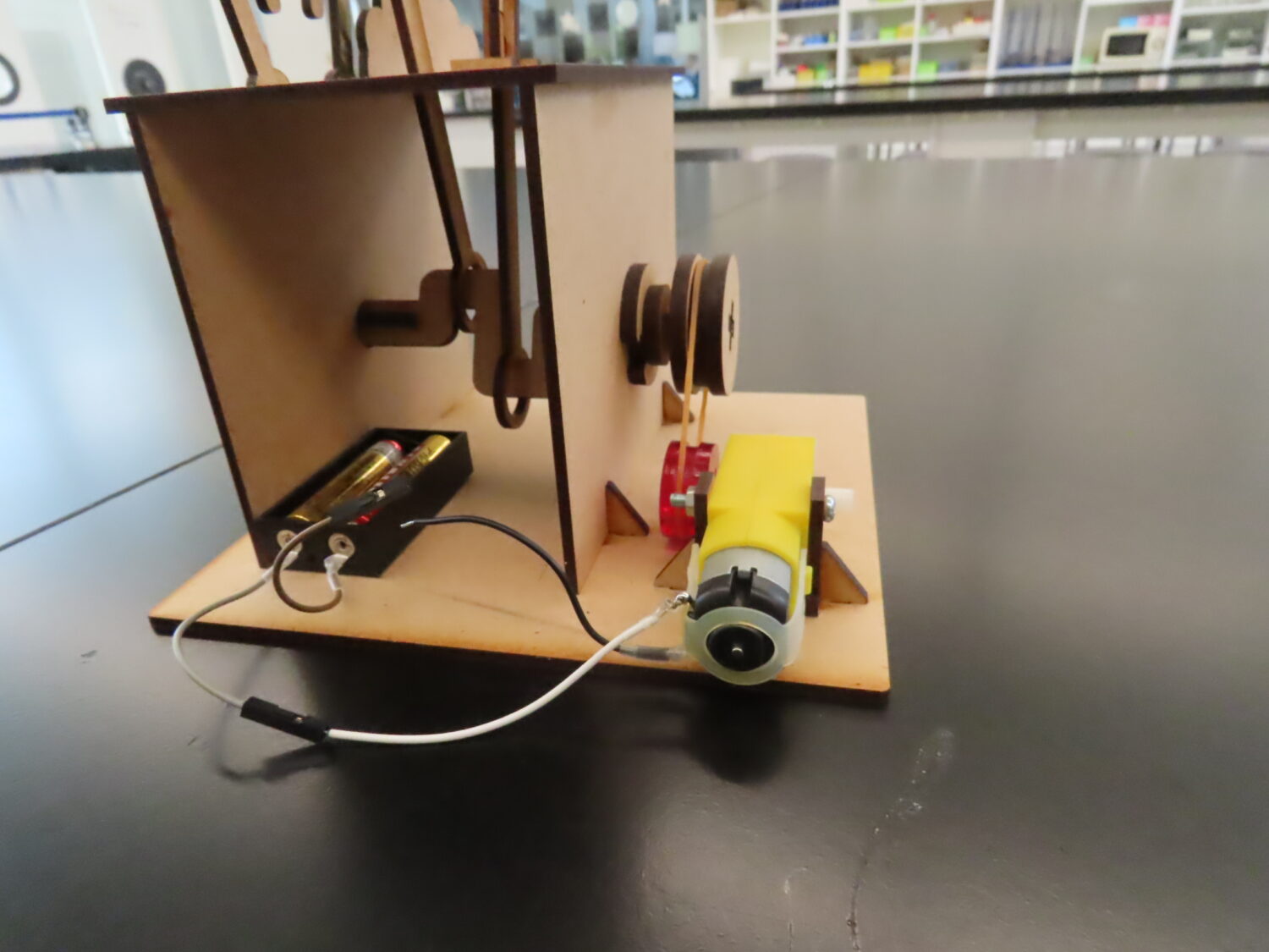 また、プーリーを使って2種類の速さを作ることとジャンプの幅を調整する仕組みを工夫してみましょう。